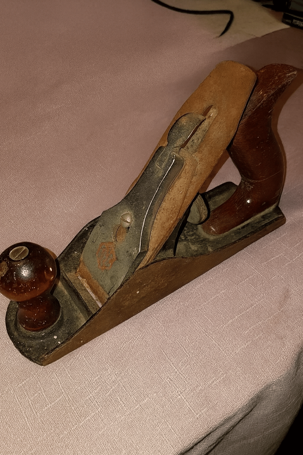 Een gebroken bek, een verroeste beitel, een gespleten salontafelbeen, de bankschroef en houtvijlen van opa ...