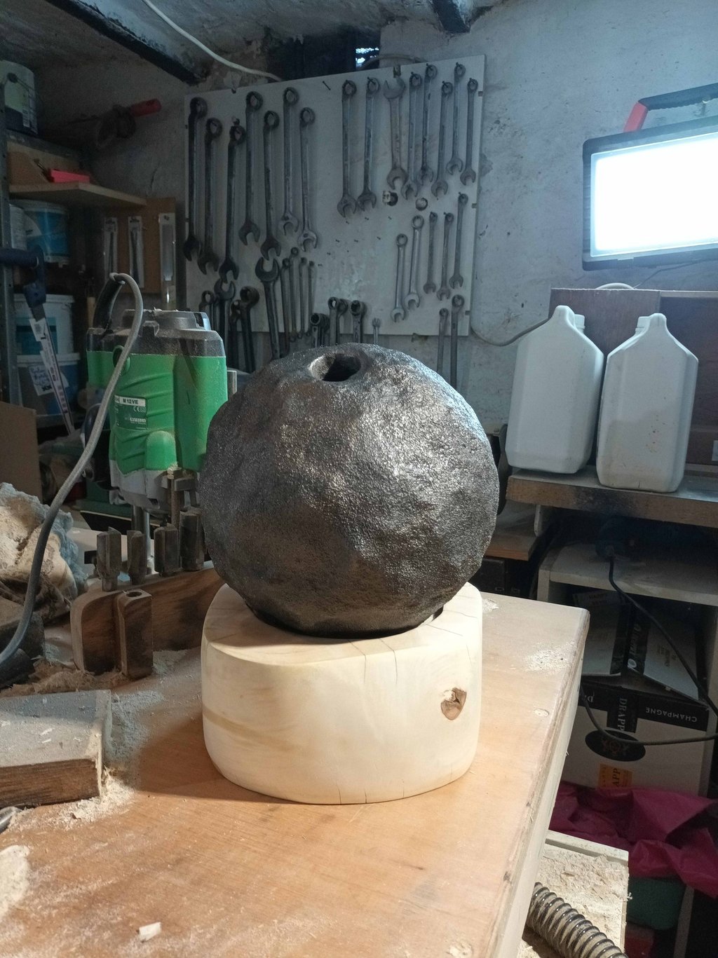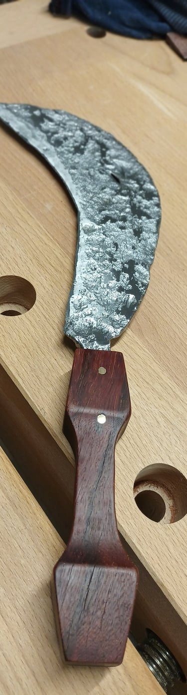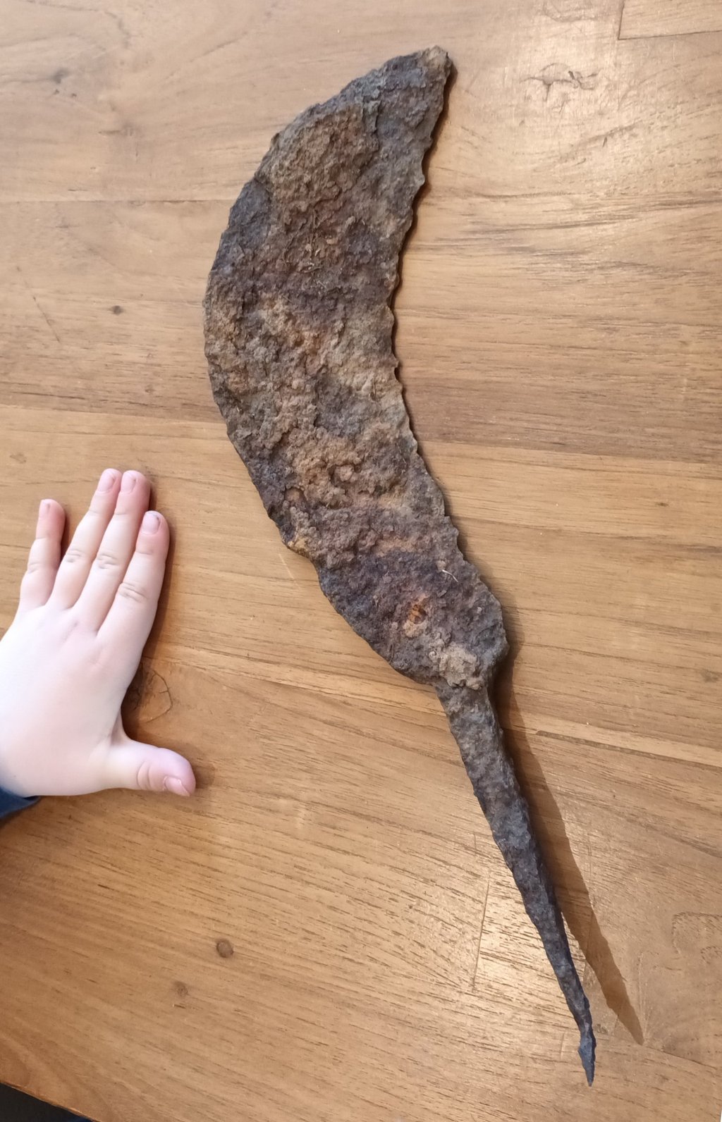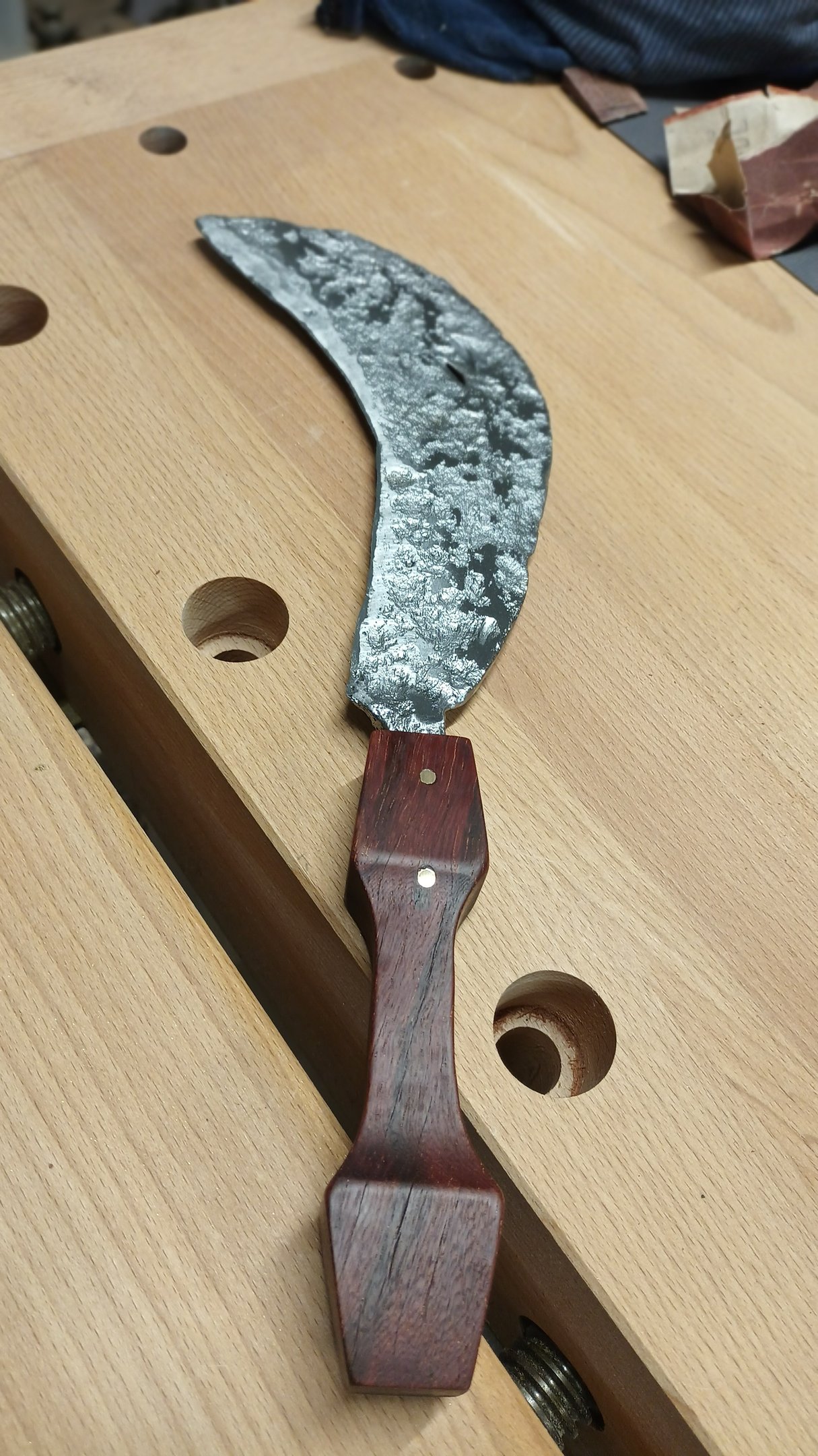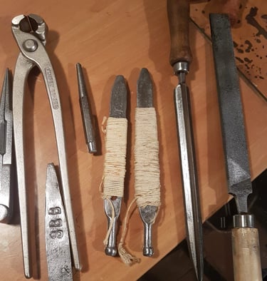 Un bec cassé, une faussille rouillée, un pied de table de salon fendu, l'étau et les limes à bois du grand-père...